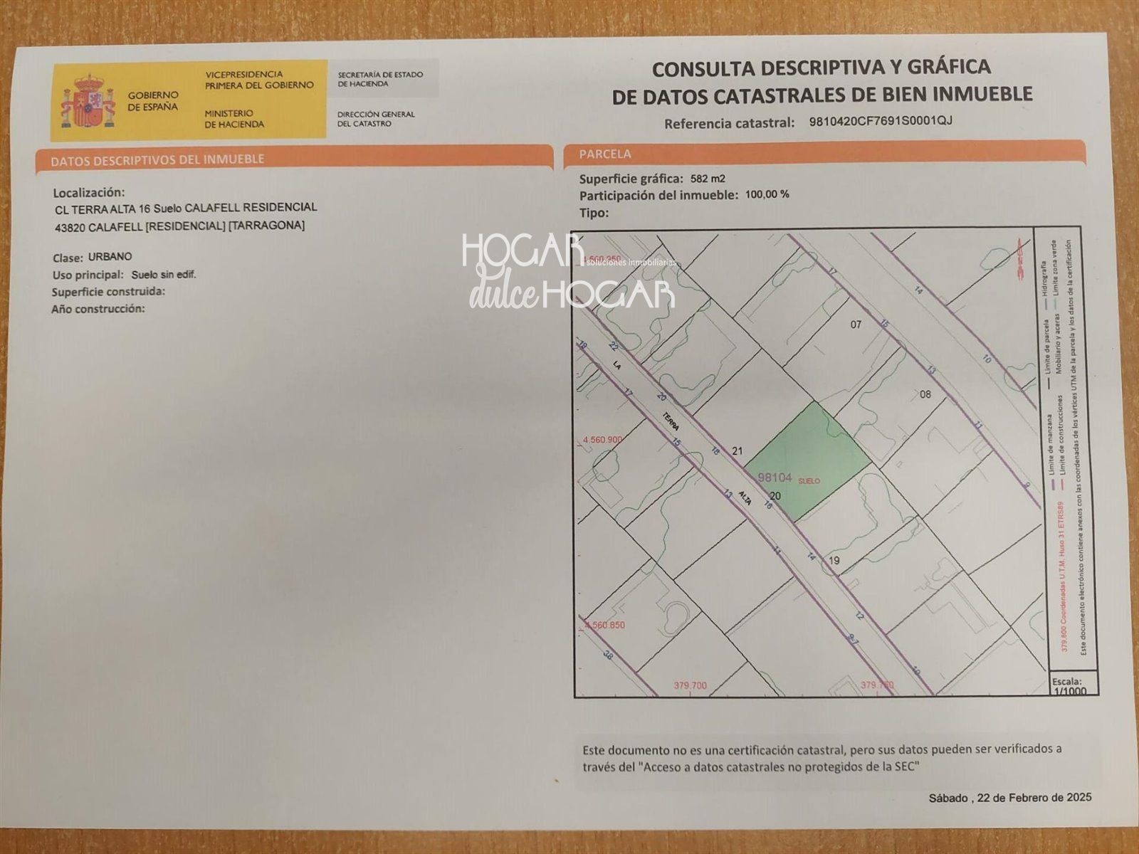 Parcel·la 582 m2