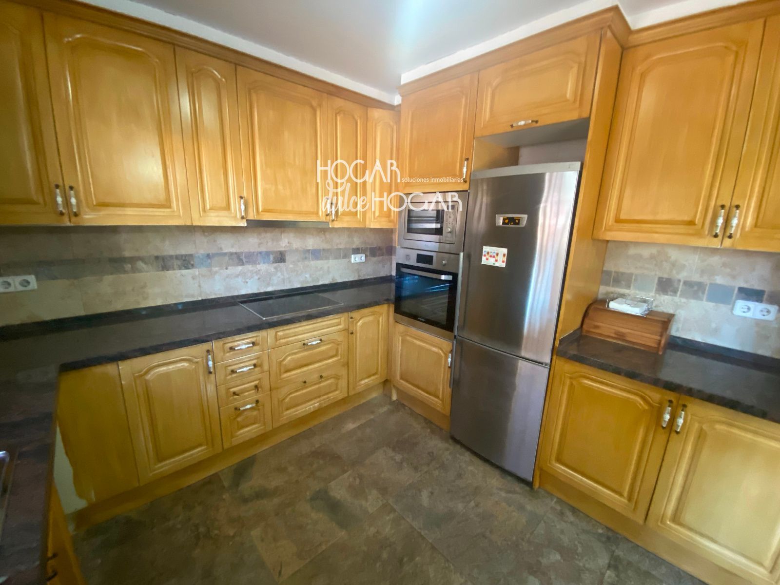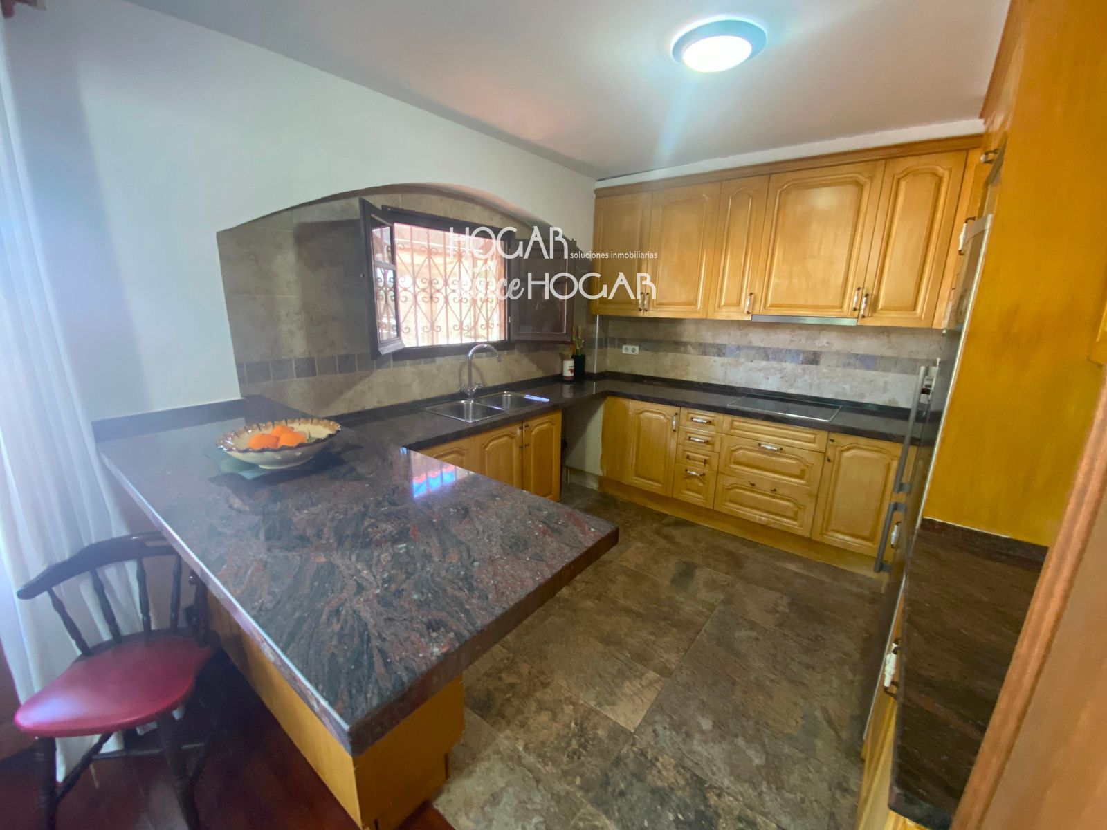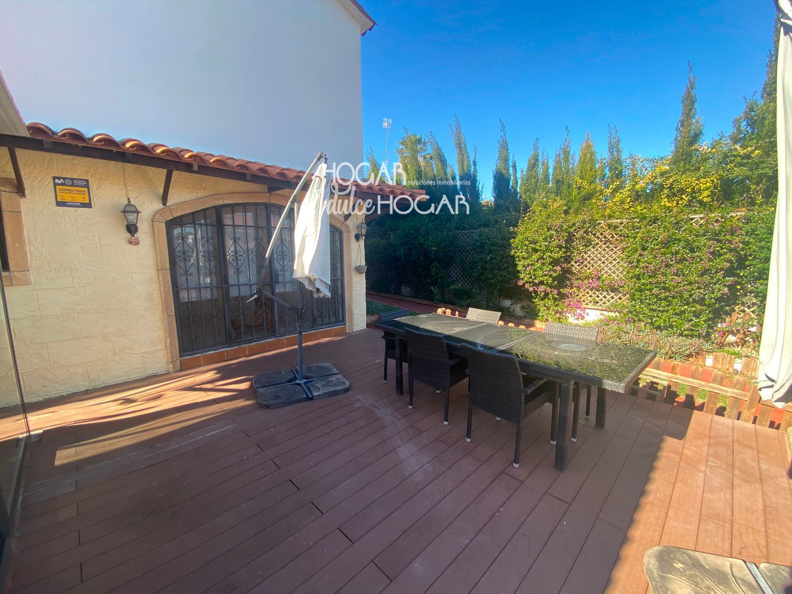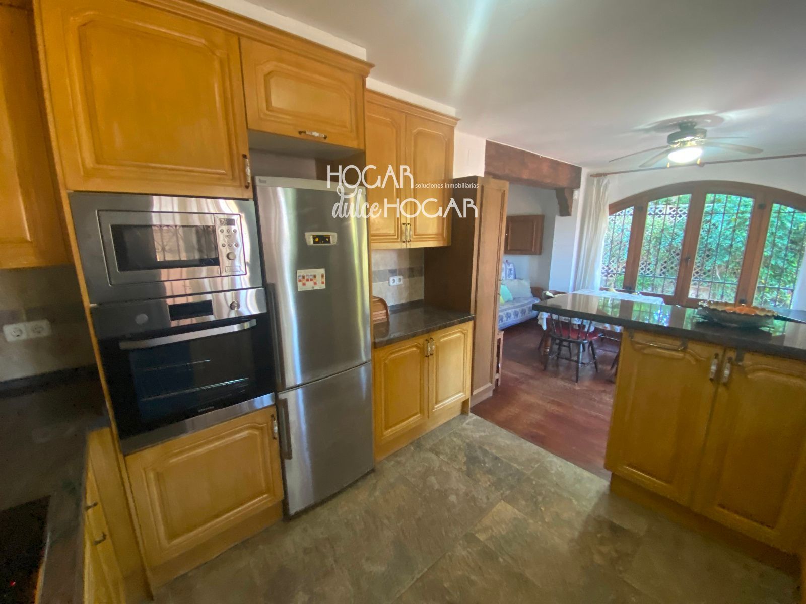 La cocina ABIERTA al  comedor, amplia y práctica, conecta directamente con la zona exterior, permitiendo un acceso cómodo y fluido al jardín y a la zona de piscina, un espacio perfecto para disfrutar del clima mediterráneo, reuniones al aire libre y momentos de relax.