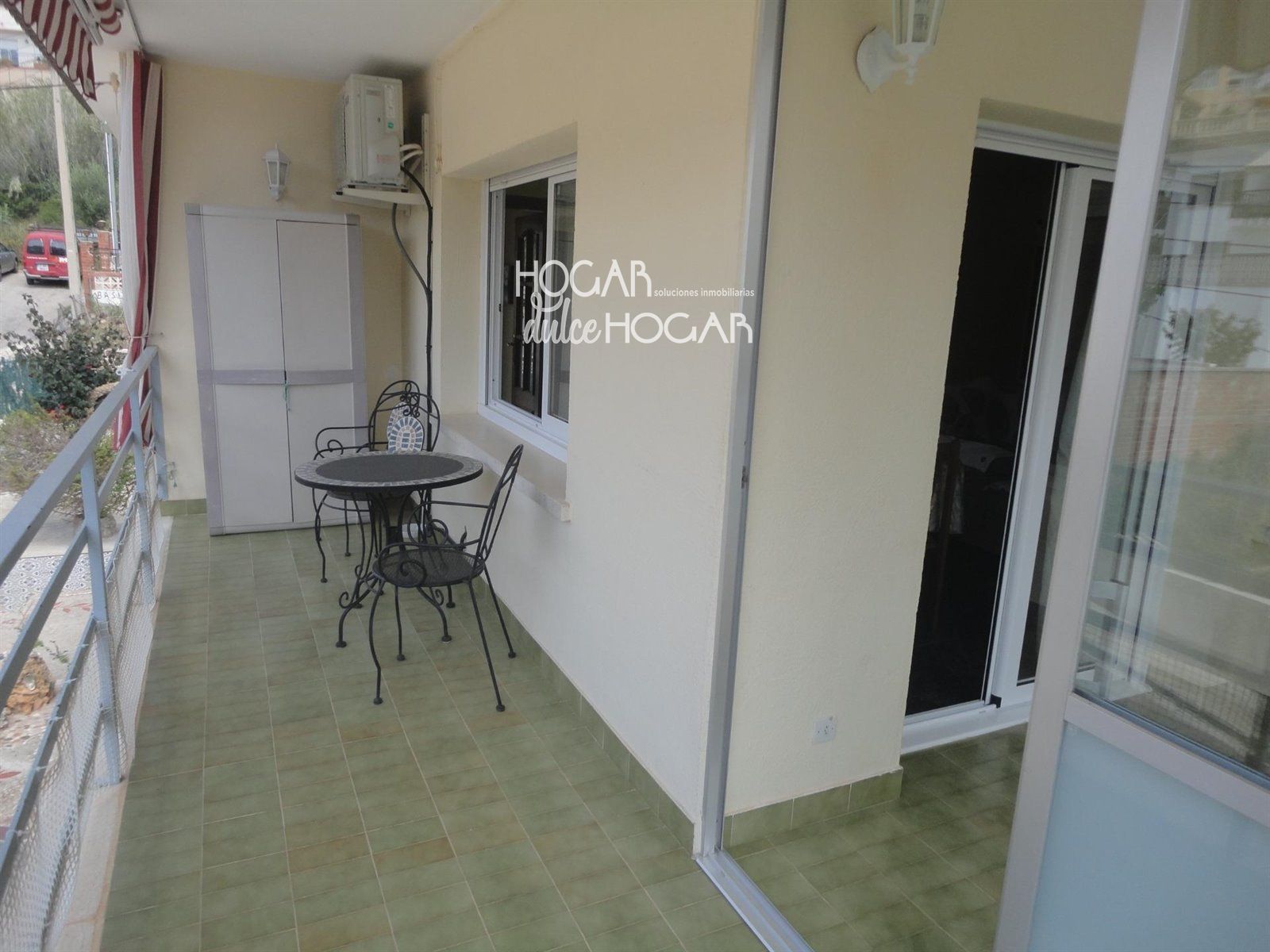 Vivienda principal en planta superior. 4 dormitorios dobles, 1 baño, cocina, salon con chimenea y aire acondicionado, terraza acristalada y terraza con vistas mar.