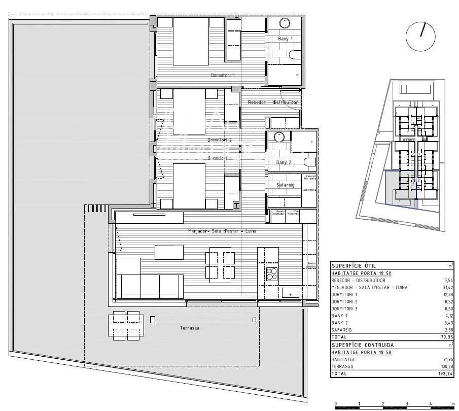 Si desea vivir en un entorno privilegiado cerca de todos los servicios no deje escapar esta oportunidad venga a visitar esta nueva construcción de un edificio plurifamiliar compuesto por 24 viviendas situado en la localidad de Cunit. .Este bloque de nueva construcción ha sido diseñado con un enfoque en la elegancia moderna. Cada piso ha sido meticulosamente diseñado para maximizar el espacio y la luz, creando un ambiente acogedor y atractivo y con los más altos estándares de calidad. Desde los acabados interiores hasta los electrodomésticos de alta gama, como cada pequeño detalle, garantizando la máxima satisfacción para del propietario..Con una superficie construida total de 192,24 m2 de vivienda, y 91,96 m2 construidos interior de vivienda se encuentra distribuidos 3 amplias habitaciones (1 de ellas suitte), salón comedor con cocina americana de 31,43 m2 totalmente equipada con todos los electrodomésticos, 2 baños completos, 1 lavadero con los electrodomésticos integrados de lavadora y secadora marca BALAY, recibidor, terraza de 100,28 m2, suelos porcelanamicos en toda la vivienda, carpintería exterior de aluminio de color gris claro de perfil eficiente y con rotura de puente térmico, carpintería interior con puertas correderas lacadas en blanco..Además, contamos con zona comunitaria con piscina, ascensor y plazas de parking opcionales. .El entorno y municipio:.Cunit se encuentra situado en la comarca del Bajo Penedés y en la provincia de Tarragona aunque está incluido en la tercera corona de la región urbana de Barcelona. Limita con Segur de Calafell (localidad del municipio de Calafell), de la misma comarca, así como con Cubellas, en la comarca del Garraf, y Castellet y Gornal, en la comarca del Alto Penedés, ambos de la provincia de Barcelona..Su paisaje es típicamente mediterráneo, desde los 2,5 km de playas de arena fina, protegidas por los espigones que le proporciona sus formas semicirculares características, pasando por las planicies agrícolas (denominadas Prats de Cunit i Plana del Castell) hasta las sierras del centro (Sierra de Sant Antoni) y norte del municipio, siendo parte de las últimas montañas de la sierra litoral catalana... .